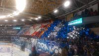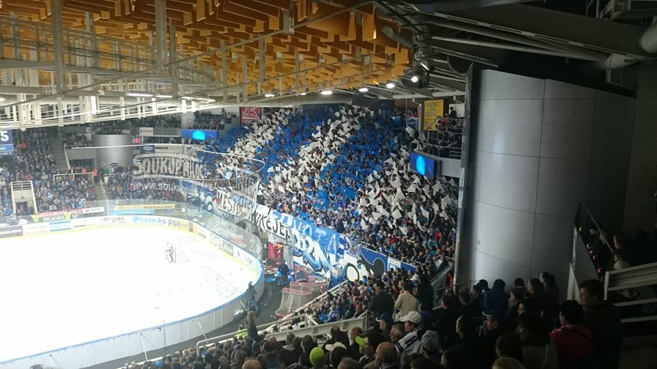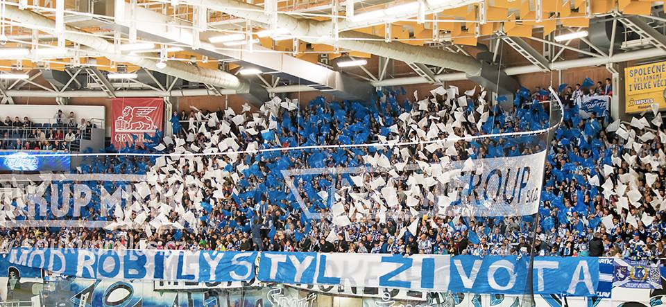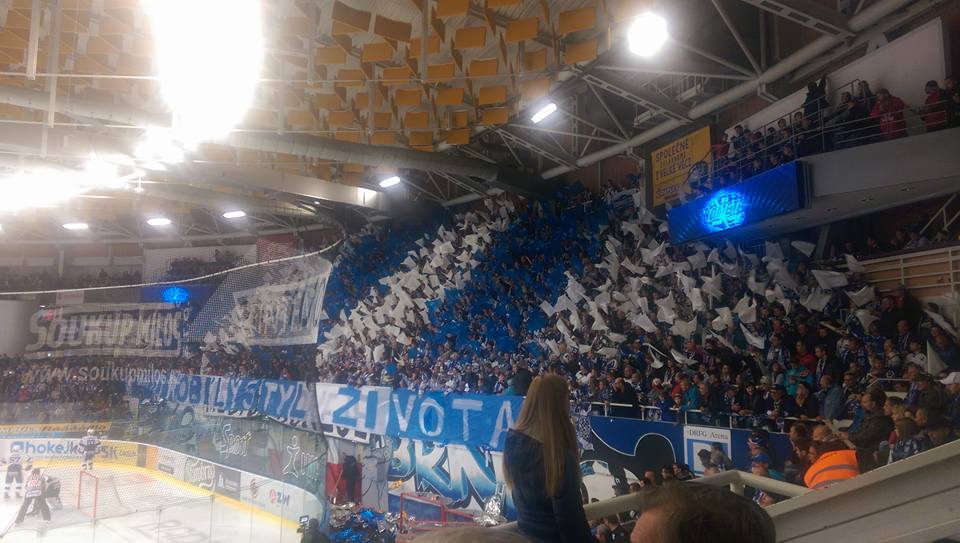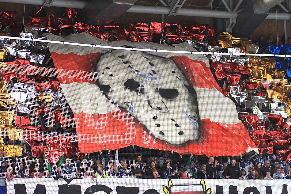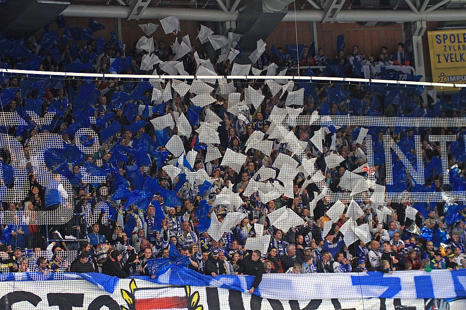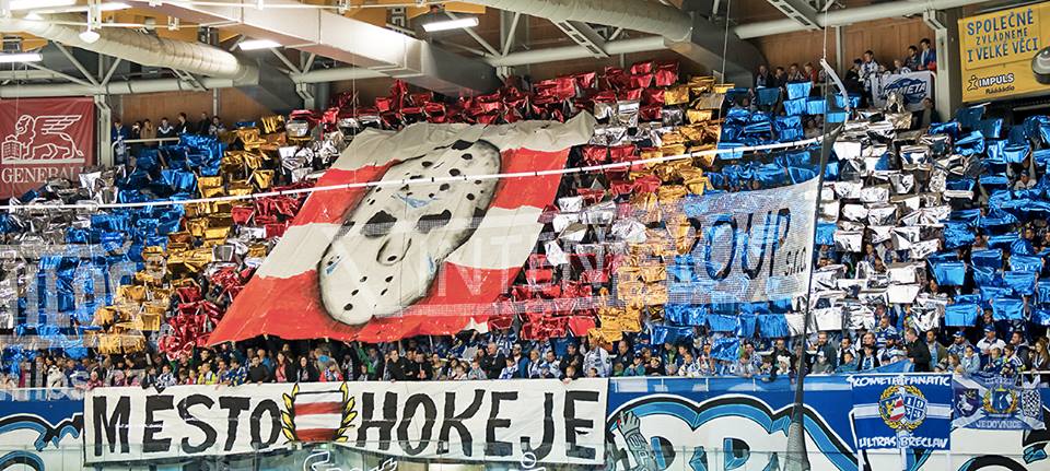 Na tento zápas máme přichystanou trošku složitější choreografii a tak se scházíme v kotli o něco dříve, aby prezentace dopadla na 100%. Ještě před začátkem zápasu rozjíždíme support a při nástupu hráčů na led vytahujeme v kotli barevné fólie a malovanou plachtu 9x8 metrů s motivem staré brankářské masky. Vše je doplněno o nápis "Město hokeje". Plachta i fólie jdou následně dolů a vytahují se modré a bílé vlaječky, rozdělené do stejně barevných pruhů. I nápis je nový: "Modrobílý styl života".